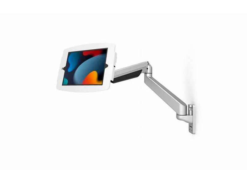 Compulocks iPad 10.2" Space Enclosure Articulating Arm Mount White - High-Grade Aluminum Enclosure, Tilt, Pan, and Swing Articulating Arm, Quick Slide On / Off Display Mount, Arm Extends Out Up To 23.2" (59cm), Wire and Cable Management, 2 Enclosure Keys