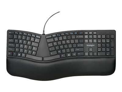 Kensington Pro Fit Ergo Wired Keyboard - Cable Connectivity - USB Type A Interface - Windows, ChromeOS, Mac OS - Black