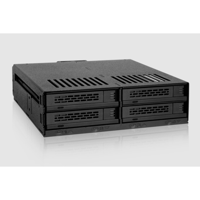 Icy Dock ToughArmor MB699VP-B V3 Drive Enclosure for 5.25" PCI Express NVMe 4.0, U.2, U.3 - SFF-8612 OCuLink Host Interface Internal - Black - Hot Swappable Bays - 4 x SSD Supported - 4 x Total Bay - 4 x 2.5" Bay - Metal