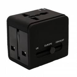 (SY-ADA60013) Universal Travel Adapter, International Plug (US / UK / EU / AU) with Dual USB Type-A Charging Port, Input: AC100-250V, Output: DC 5V 2.1A, Black Color |