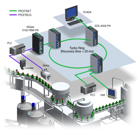 An Ethernet-based control system to allow centralized SCADA/HMI control and monitoring of remote networks, including PLCs and fieldbus devices. |