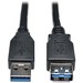 Eaton Tripp Lite Series USB 3.0 SuperSpeed Extension Cable - USB M/F, Black, 3 ft. (0.91 m) - 3 ft USB Data Transfer Cable for Computer, Printer, Modem, Notebook, Chromebook, Tablet, Keyboard, Portable Hard Drive, Patch Panel, Server, Home Theater System - First End: 1 x USB 3.0 Type A - Male - Second End: 1 x USB 3.0 Type A - Female - 5 Gbit/s - Extension Cable - Nickel Plated Connector - 28/24 AWG - Black