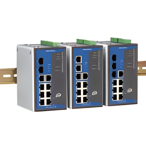 Managed Ethernet switch with 2 10/100/1000 BaseTx, 2 100 BaseFx single mode and 14 10/100 BaseTx Ports with VLAN, IGMP Snooping and QoS