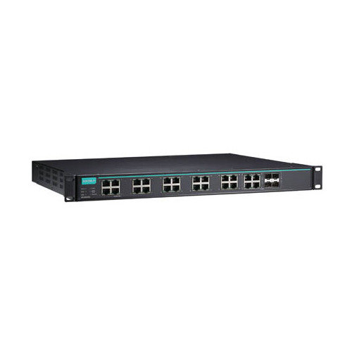 Layer 3 Full Gigabit managed Ethernet switch with 20 10/100/1000BaseT(X) ports, and 4 10/100/1000BaseT(X) or 100/1000BaseSFP slot combo ports, 2 isolated power supplies (85 to 264 VAC), -40 to 75°C operating temperature