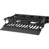 Strain relief bar extends 5" off the rack; supports, manages, and provides proper bend radius protection.