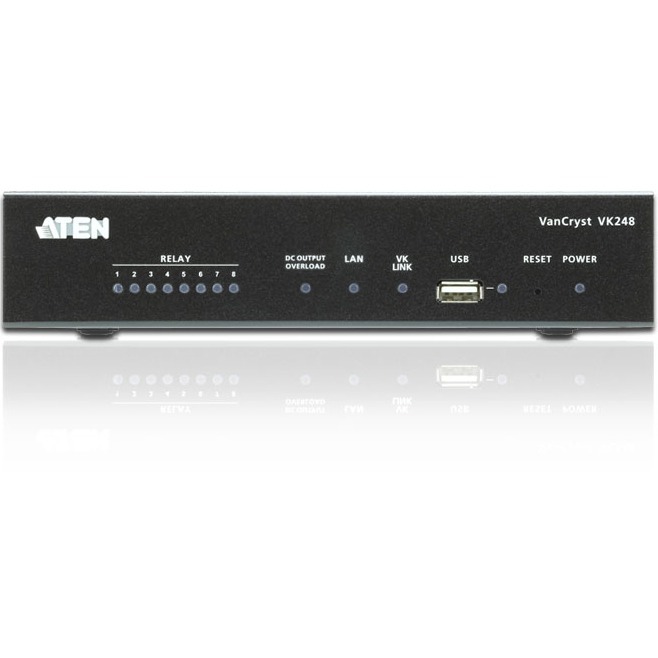 The VK248 8-Channel Relay Expansion Box provides an additional eight channels of relay output for a flexible expansion of the ATEN Control System. This allows users to control additional devices such as screen, projector lifts and blinds in environments where more devices are required. With the advantage of an Ethernet-based connection, the expansion box easily connects to the VK2100 Control Box via a LAN connection from a variety of locations across a network.