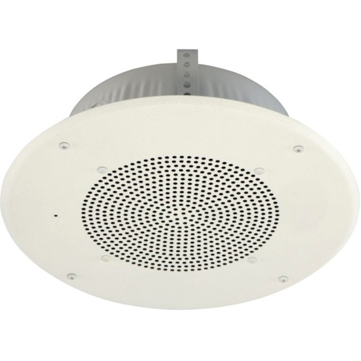 The ASK-4®#501 TLI-CF is a single zone audio monitoring system with two-way listen and talkback. Remote flush celing mounted unit contains a microphone and a speaker. Desktop base unit produces live audio and playback. Talkback from base unit to remote speaker/microphone is actuated by engaging the "push to talk" switch and speaking into the built-in microphone. Person at the remote speaker/microphone can listen and talk hands-free. Input/output to DVR/CCTV for recording and audio playback. Includes back box for flush mounting.