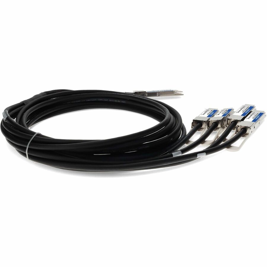 This is an industry standard 200GBase-CU QSFP-DD 200G to 4xQSFP28 50G NRZ direct attach cable that operates over passive copper with a maximum reach of 2.5m (8.2ft). It has been programmed, uniquely serialized, and data-traffic and application tested to ensure it is 100% compliant and functional. This direct attach cable is TAA (Trade Agreements Act) compliant, and is built to comply with MSA (Multi-Source Agreement) standards. We stand behind the quality of our products and proudly offer a limited lifetime warranty.