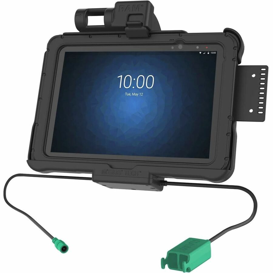 Featuring GDS® Technology™ for data and charging capabilities, the GDS® Vehicle Dock for Zebra ET5x 10.1" series tablets allows you to connect up to two desired peripherals while keeping the device charged through the pogo pin contacts when the device is docked. Power is provided by connecting to the dock's 5.5mm DC power jack, while peripheral support is provided by the built-in dual USB Type A cable. The dock also allows the tablet's scanning function to work through the cutout on the back which also accommodates tablet add-ons such as scanner, hand strap, and PowerPack battery. This vehicle dock is compatible with C and D size RAM® 4-hole AMPS and 75mm x 75mm VESA pattern bases for attaching a double socket arm in order to complete your mounting solution. Take the solution a step further by taking advantage of the built-in 2-hole mounting plate compatible with RAM® 2-hole diamond base for additional device mounting such as a phone, or other handheld device. An included optional accessory bracket will allow you to connect RAM® 2-hole diamond bases for device mounting and features a cable management system.