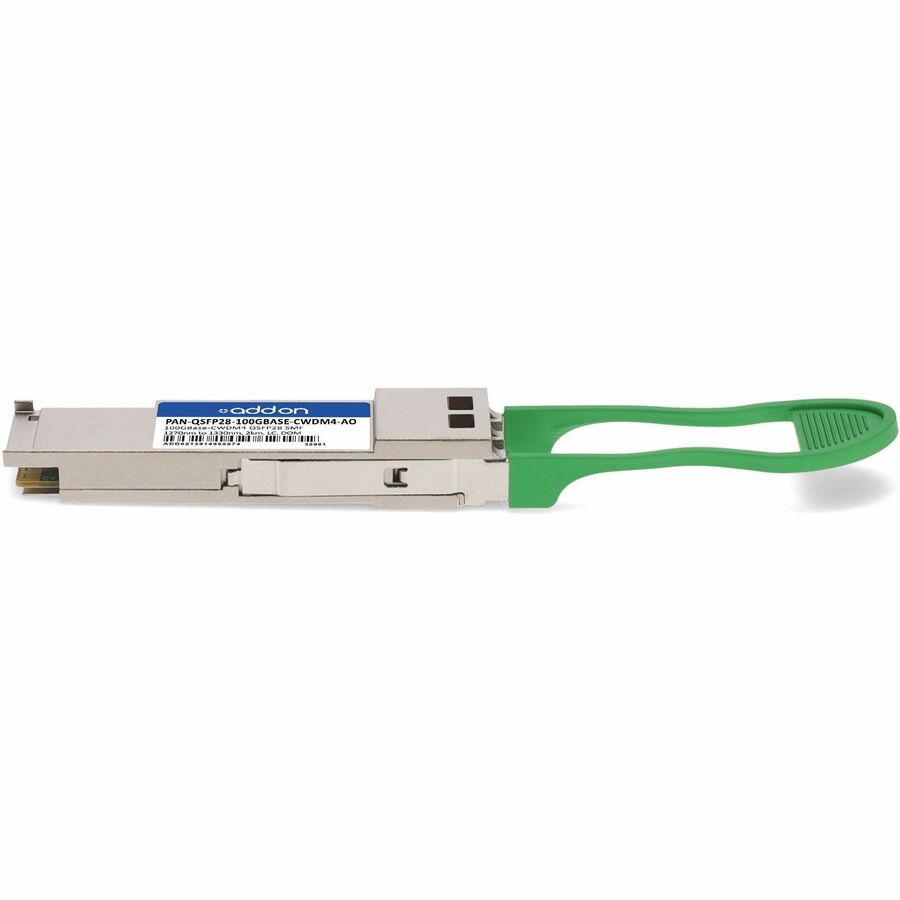 This Palo Alto Networks® PAN-QSFP28-100GBASE-CWDM4 compatible QSFP28 transceiver provides 100GBase-CWDM4 throughput up to 2km over single-mode fiber (SMF) using wavelengths between 1270nm to 1330nm via an LC connector. It can operate at temperatures between 0 and 70C. Our transceiver is built to meet or exceed OEM specifications and is guaranteed to be 100% compatible with Palo Alto Networks®. It has been programmed, uniquely serialized, and tested for data-traffic and application to ensure that it will initialize and perform identically. All of our transceivers comply with Multi-Source Agreement (MSA) standards to provide seamless network integration. Additional product features include Digital Optical Monitoring (DOM) support which allows access to real-time operating parameters. This transceiver is Trade Agreements Act (TAA) compliant. We stand behind the quality of our products and proudly offer a limited lifetime warranty.