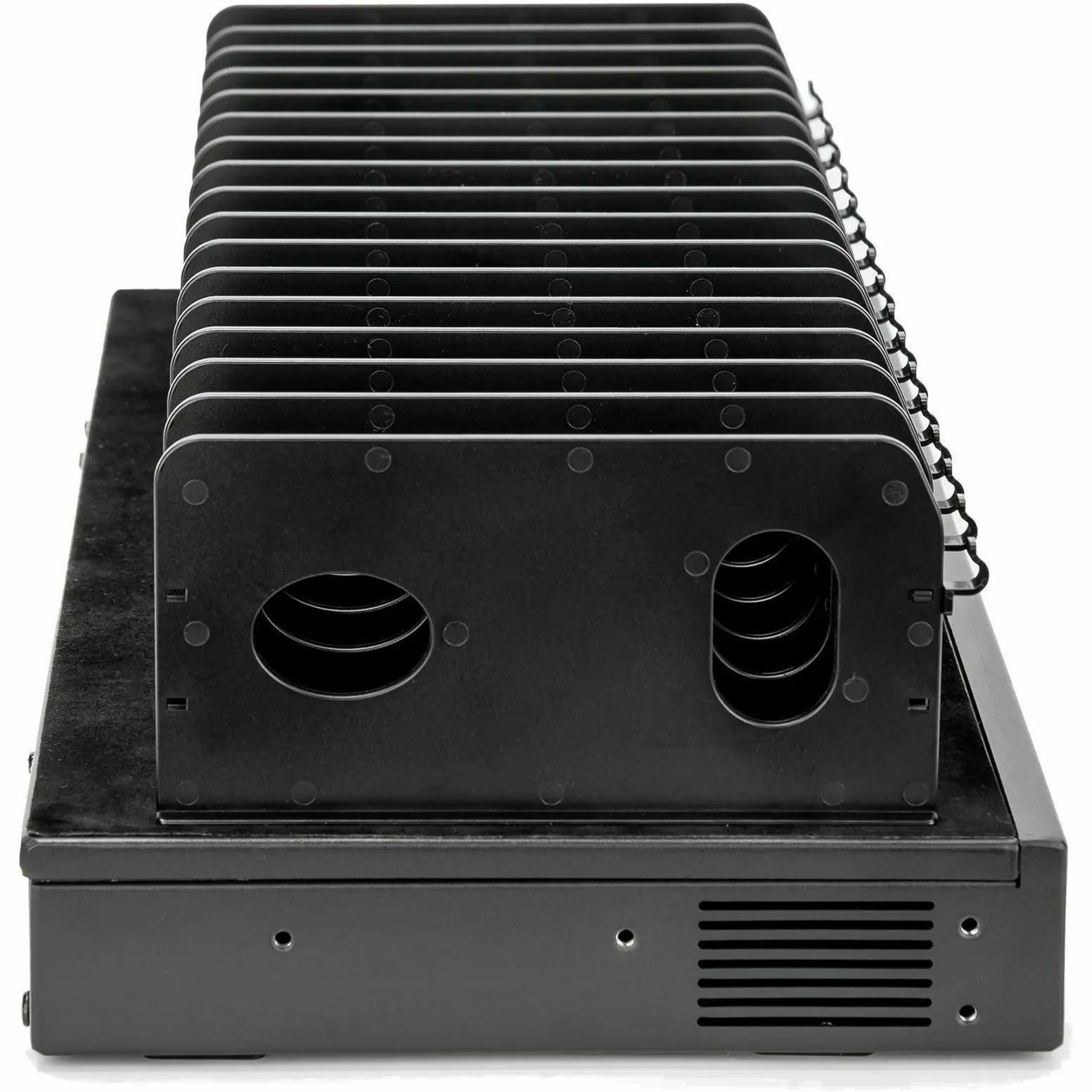 Volt DSC16's robust feature set makes it an ideal solution for dynamic settings where various devices need frequent charging. It supports a wide array of charging protocols, including PD3.0, QC5, PPS, FCP, AFC, QC3.0, and Apple® 2.4A, ensuring compatibility with nearly all USB-C™ devices. Safety is paramount, and the DSC16 doesn't disappoint- it is UL certified, operates with exceptionally quiet fans that won't disrupt any work environment, and comes with secure mounting brackets to affix the unit firmly in place. Moreover, each slot is equipped with a cable organizer and a protective velvet lining to prevent scratches on devices, reflecting a thoughtful design that values both functionality and device care.