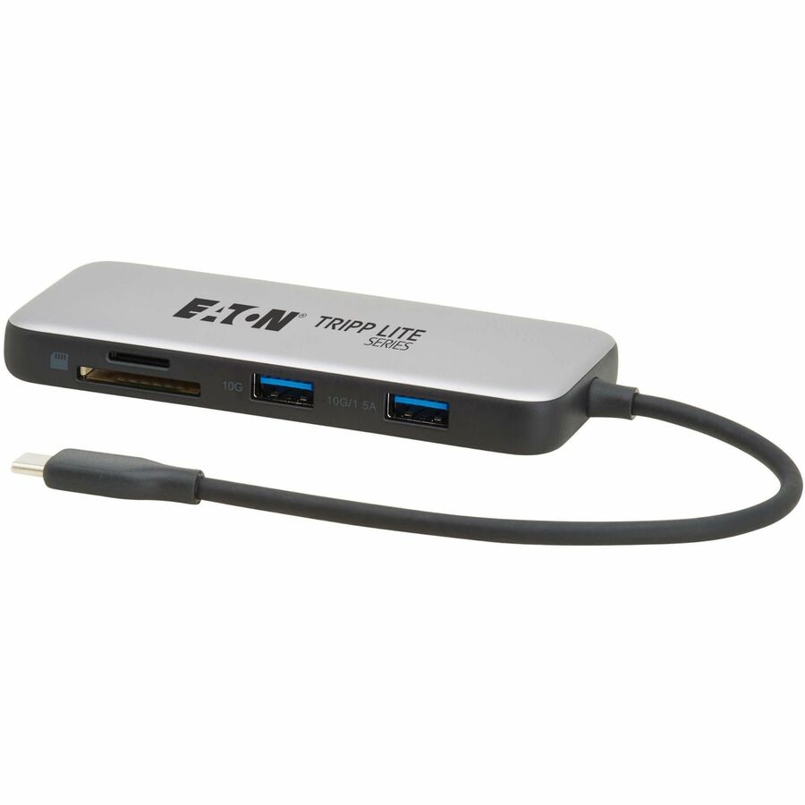 This versatile 4K adapter adds multiple ports to the USB-C or Thunderbolt 3 port on your MacBook Pro or Windows laptop. The U444-06N-H4MUC3 allows you to transmit digital audio and 4K video to a large display, add a thumb drive or other USB peripheral, power and charge a PD Charging-compliant mobile device, and transfer data to and from SD and microSD memory cards. It's an ideal adapter for personal or business workspaces that frequently connect to thumb drives and other external data storage.