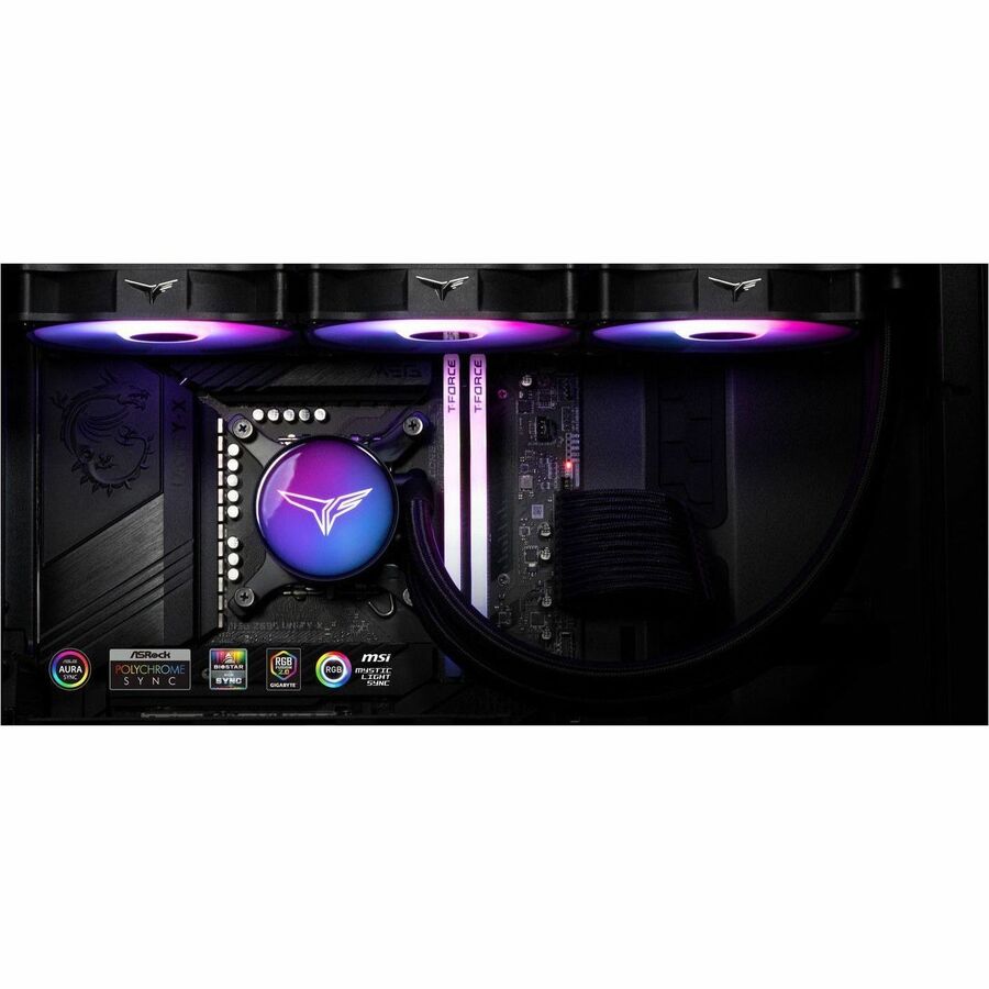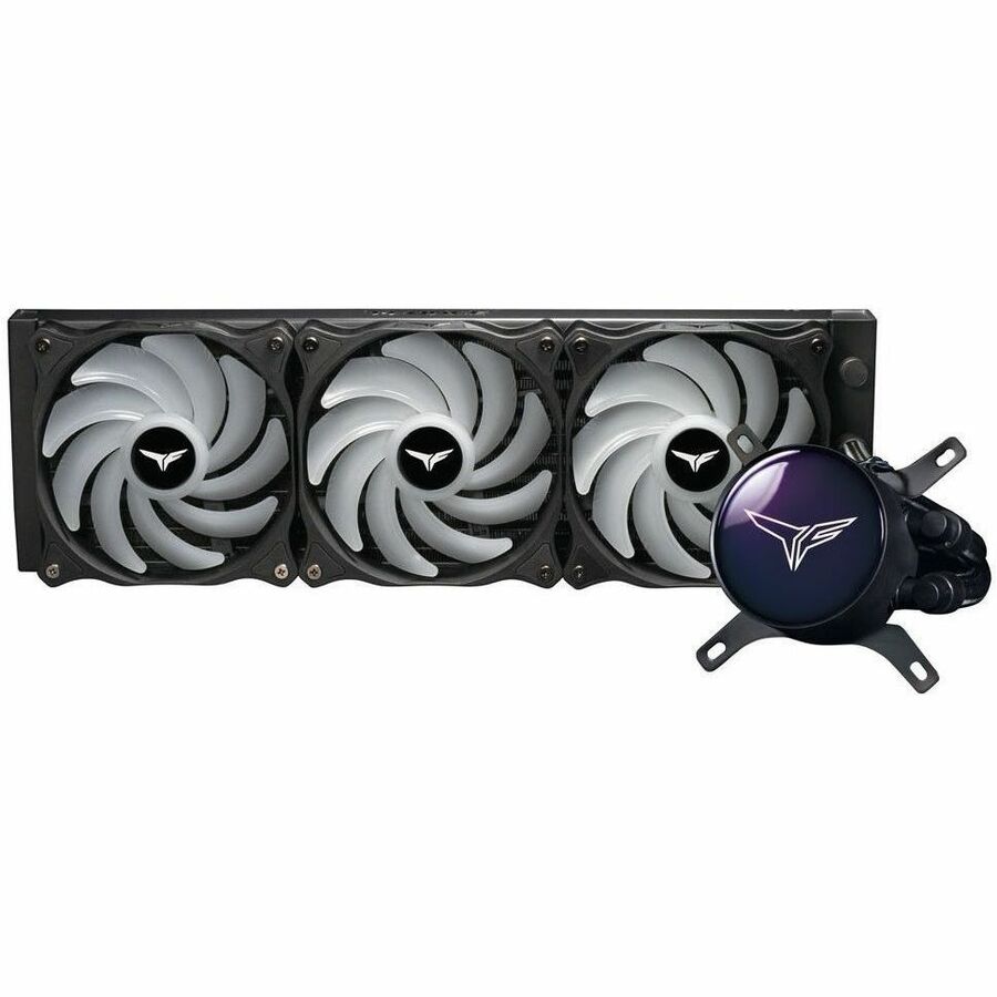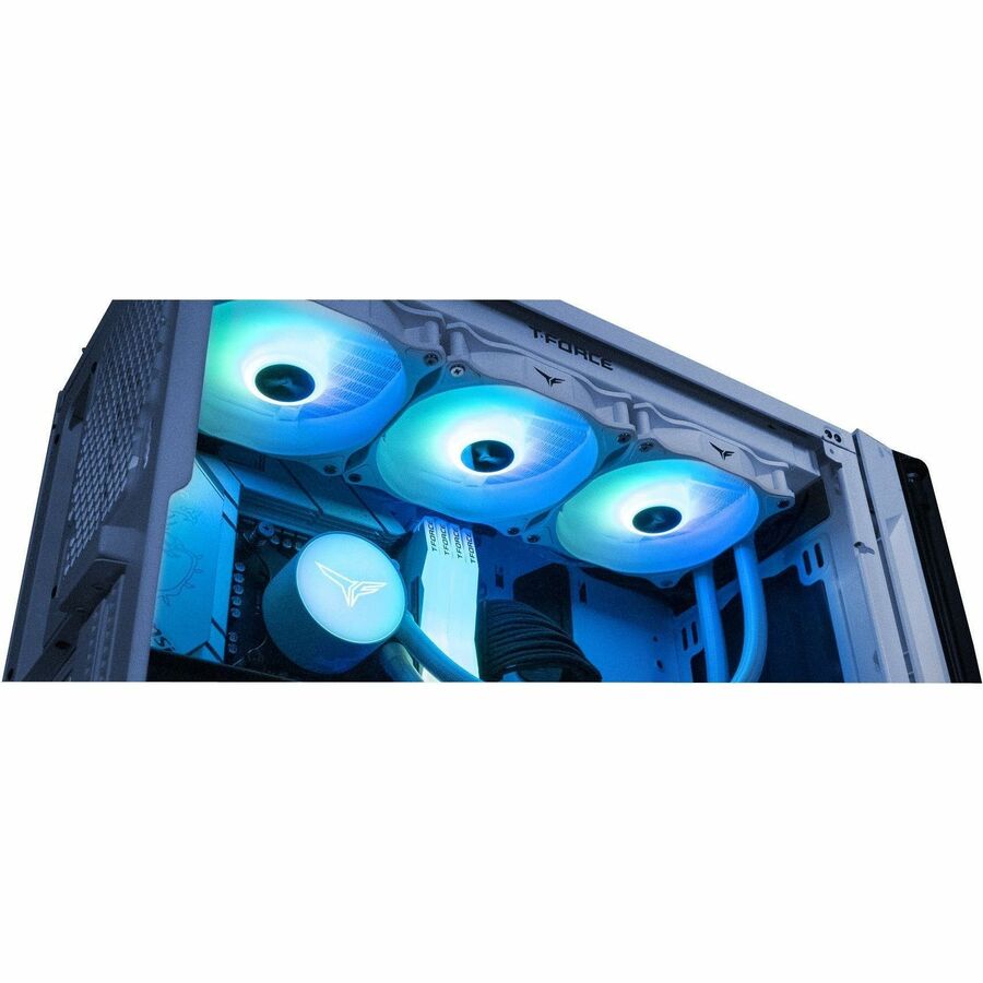 Unlike traditional cooling devices, we've chosen to put the pump inside a radiator for the T-FORCE SIREN GD360E All-in-One ARGB CPU Liquid Cooler to prevent pump vibrations from damaging the CPU and to minimize noise. The copper aluminum water block and jet-fin design are complemented with PWM control, which will adjust the fan's rotational speed according to the temperature to achieve optimal cooling. The mirror ARGB Water Block and ARGB fans support many lighting control software.