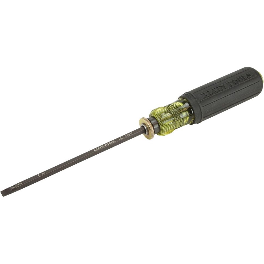 The Adjustable Length screwdriver features a shaft that adjusts within 4-Inch to 8-Inch (10 to 12 cm) for numerous length choices. The shaft is removable and reversible with a different tip on each end. Carry fewer tools with this versatile multi-length, multi-bit driver. A variety of blade types are also available.