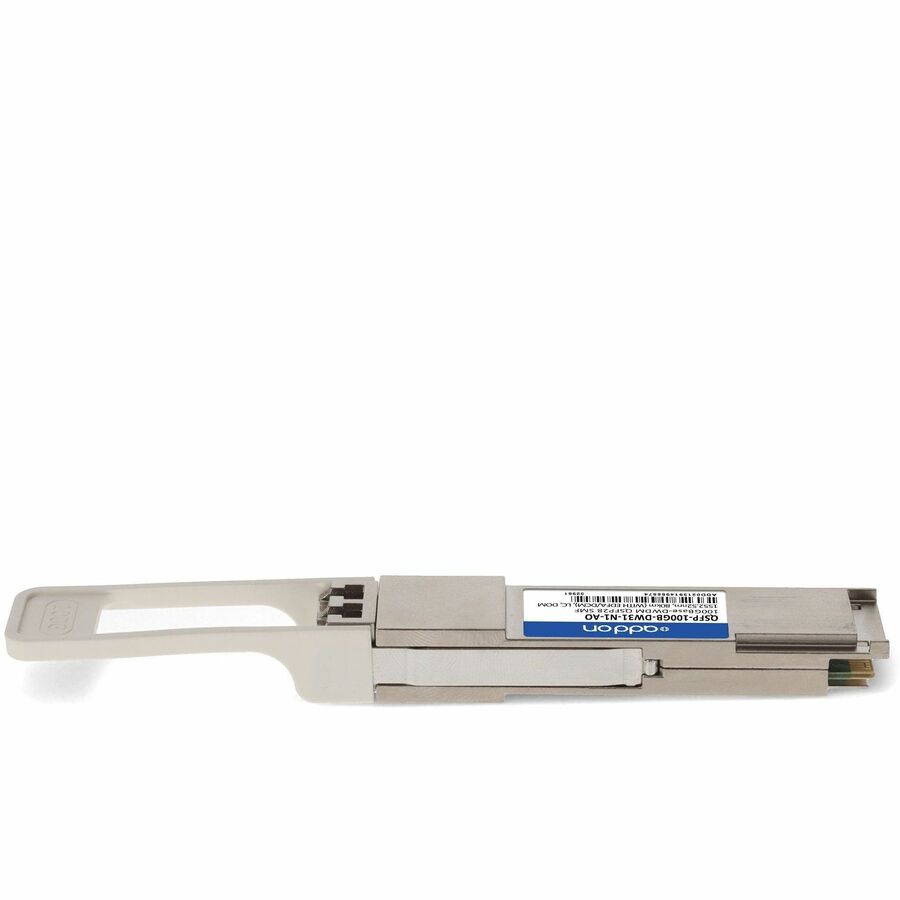 This Alcatel-Lucent Nokia compatible QSFP28 transceiver provides 100GBase-DWDM throughput up to 80km over single-mode fiber (SMF) PAM4 using a wavelength of 1552.52nm via an LC connector. It can operate at temperatures between 0 and 70C. Our transceiver is built to meet or exceed OEM specifications and is guaranteed to be 100% compatible with Alcatel-Lucent Nokia. It has been programmed, uniquely serialized, and tested for data-traffic and application to ensure that it will initialize and perform identically. All of our transceivers comply with Multi-Source Agreement (MSA) standards to provide seamless network integration. Additional product features include Digital Optical Monitoring (DOM) support which allows access to real-time operating parameters. This transceiver is Trade Agreements Act (TAA) compliant. We stand behind the quality of our products and proudly offer a limited lifetime warranty.