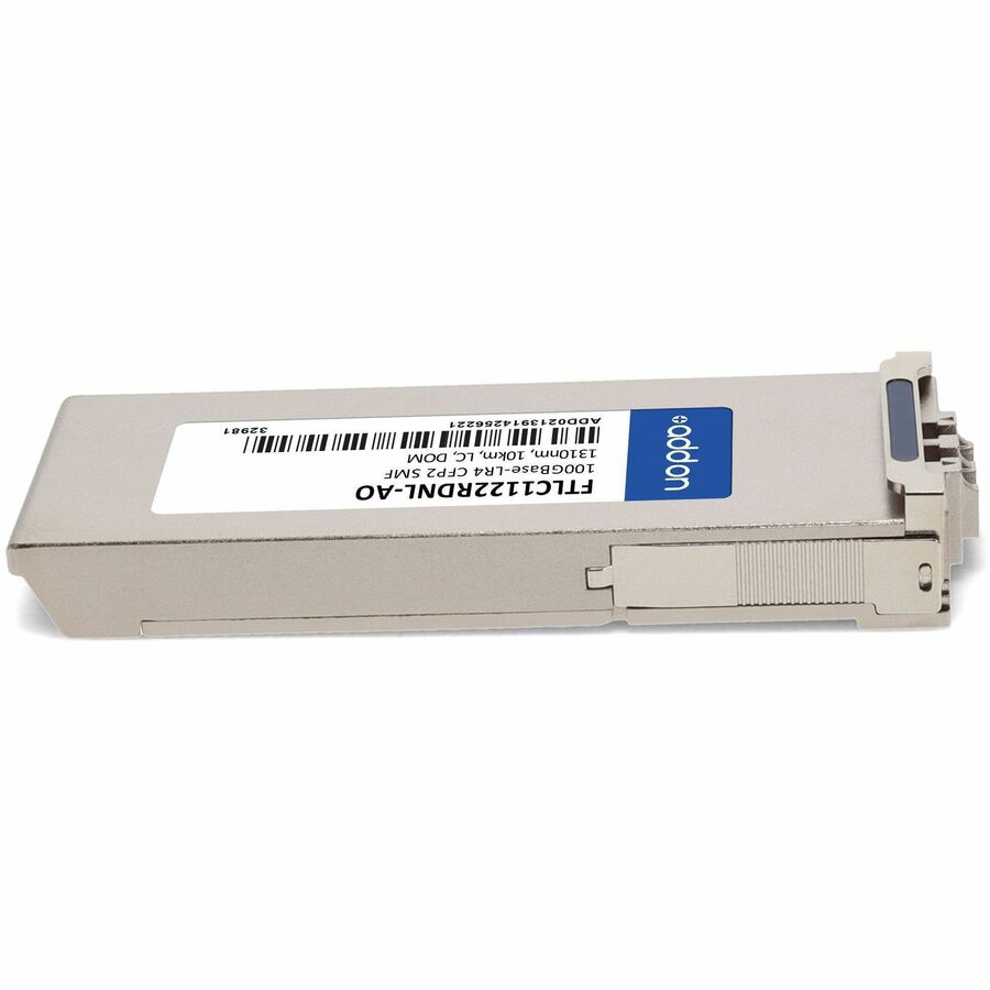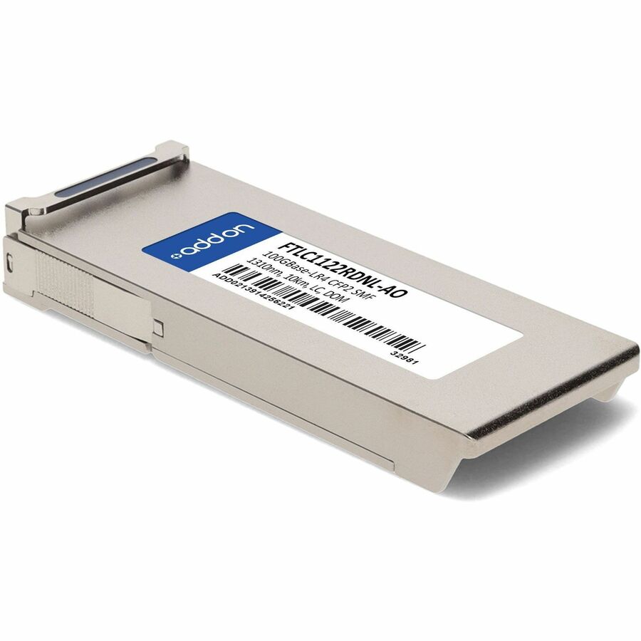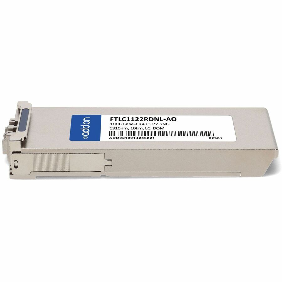 This Finisar FTLC1122RDNL compatible CFP2 transceiver provides 100GBase-LR4 throughput up to 10km over single-mode fiber (SMF) using a wavelength of 1310nm via an LC connector. Our transceiver is built to meet or exceed OEM specifications and is guaranteed to be 100% compatible with Finisar. It has been programmed, uniquely serialized, and tested for data-traffic and application to ensure that it will initialize and perform identically. All of our transceivers comply with Multi-Source Agreement (MSA) standards to provide seamless network integration. Additional product features include Digital Optical Monitoring (DOM) support which allows access to real-time operating parameters. This transceiver is Trade Agreements Act (TAA) compliant. We stand behind the quality of our products and proudly offer a limited lifetime warranty.