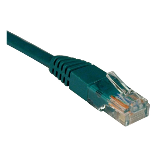 Tripp Lite's 1-ft. Green category 5e (Cat5e) patch cable has 2 standard RJ45 molded male connectors featuring integral strain relief. The cable is manufactured from PVC 4-pair stranded UTP and is rated for 350MHz/1Gbps communication. Offered in a variety of lengths and colors for all category 5 (Cat5) and 5e cabling needs. Snagless category 5e patch cables are also available (N001-Series). Tripp Lite warrants this product to be free from defects in materials and workmanship for life.