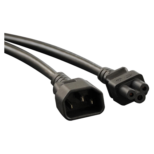 This C5 to C14 power cord is designed for connecting a notebook computer, laptop or other device with a three-slot C6 inlet to a UPS system, PDU or other C13 connector. The six-foot length allows you flexibility in placing equipment with respect to the power outlet.