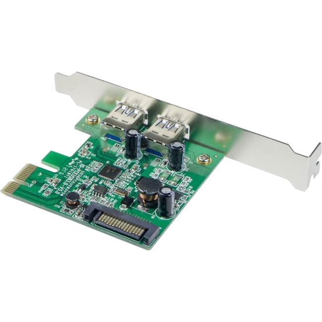 Add two High-Speed USB 3.0 SATA powered ports to any Personal Computer through easy installation in an available PCIe slot. Up to 10x faster speeds than USB 2.0 make this the ideal choice for connecting today's most popular external devices. Fully compatible with USB 2.0 and USB 1.1 devices.