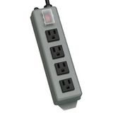 The Waber-by-Tripp Lite 4SPDX Power Strip offers a convenient method of power distribution in workbench, wallmount or floor mount applications. Includes 4 NEMA 5-15R output receptacles with 1.520-in. center-to-center spacing, 6-foot AC line cord and keyhole mounting for installation in a wide variety of applications. Corded, multi-outlet strip reduces cabling clutter and enables the connection of multiple electrical devices to a single AC wall socket. Unfiltered electrical pass-through makes the 4SPDX ideal for distributing alternate waveform UPS or generator power. Features rugged metal housing, lighted power switch with integrated 15A resettable circuit breaker and attractive beige color scheme. Lifetime warranty.PLUG/OUTLETS - Input: NEMA 5-15P/Output: 4 NEMA 5-15RELECTRICAL - 120VAC, 50/60Hz, 15A (Requires standard NEMA 5-15R wall receptacle)FORMAT - Corded power distribution strip