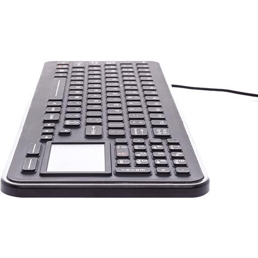 The SB-97-TP, part of iKey's SkinnyBoard™ line of thin profile keyboards, is a completely washable keyboard with the added convenience of a built-in touchpad and backlit keys. Built to be fully sealed and easy to clean, the SB-97-TP is compatible with hospital-grade disinfectants, and is resistant to liquids and debris.