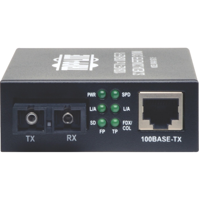 Tripp Lite's N784-001-SC-15, 10/100 to Singlemode Media Converter ( RJ45 to SC ), is an economical way to extend the distance ( up to 15kM ) of network nodes by converting Cat5e UTP cables to Singlemode Fiber Optic. The Media Converter features automatic MDI/MDI-X configuration, and the UTP port senses the network speed automatically as well. Auto-detects half or full duplex operation on the fiber port. Power supplied by small form factor AC adapter.