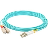 This is a 50m LC (male) to SC (male) aqua duplex riser-rated fiber patch cable. An OM3 cable has a core size of 50 microns that supports 10 Gigabit Ethernet at lengths measuring up to 300 meters, and 40 Gigabit or 100 Gigabit Ethernet measuring up to 100 meters. This optical fiber, nonconductive, riser (OFNR) cable is best suited for use in interior fiber-optic applications. A duplex cable is a two-strand fiber optic patch cable that works best with transceivers that both transmit and receive. Our patch cables are 100% compliant for all of your networking needs. Our products are guaranteed by federal law to not affect or void OEM warranties.