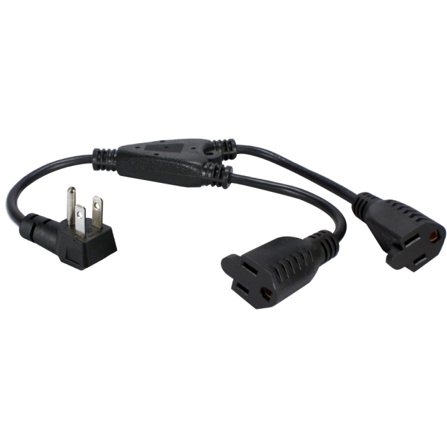 Attach two power adaptors per outlet. It can be used with any power strip or wall socket without blocking other outlets. Provides 12 Inches of space to accommodate over-size adaptors. Angled designed free up those power outlets behind furniture or desk and eliminates bending cord. Ideal for UPS, rack mount outlets and for travelling situations. Includes 2pc per pack. (Connectors: AC Angle NEMA 5-15P Male to 2 NEMA 5-15R Female; Length: 12 Inches)