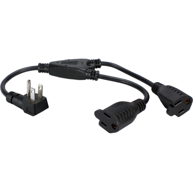 Attach two power adaptors per outlet. It can be used with any power strip or wall socket without blocking other outlets. Provides 12 Inches of space to accommodate over-size adaptors. Angled designed free up those power outlets behind furniture or desk and eliminates bending cord. Ideal for UPS, rack mount outlets and for travelling situations. Includes 4pc per pack. (Connectors: AC Angle NEMA 5-15P Male to 2 NEMA 5-15R Female; Length: 12 Inches)