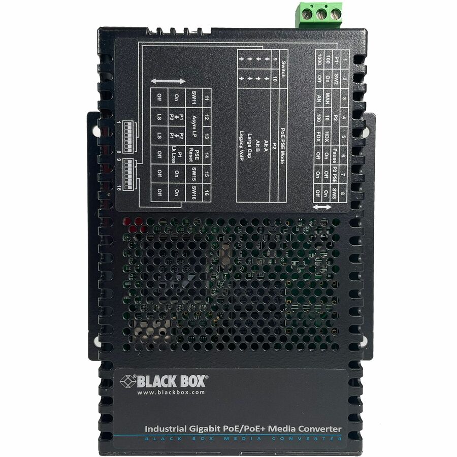The Black Box LGC5300 Series media converters convert 10/100/1000BASE-T UTP to 1000BASE-X or 100BASE-FX fiber and support Power-over-Ethernet (PoE and PoE+). Classified as Power Sourcing Equipment (PSE), they can provide power to Powered Devices (PDs) using standard UTP cables that carry the Ethernet data.