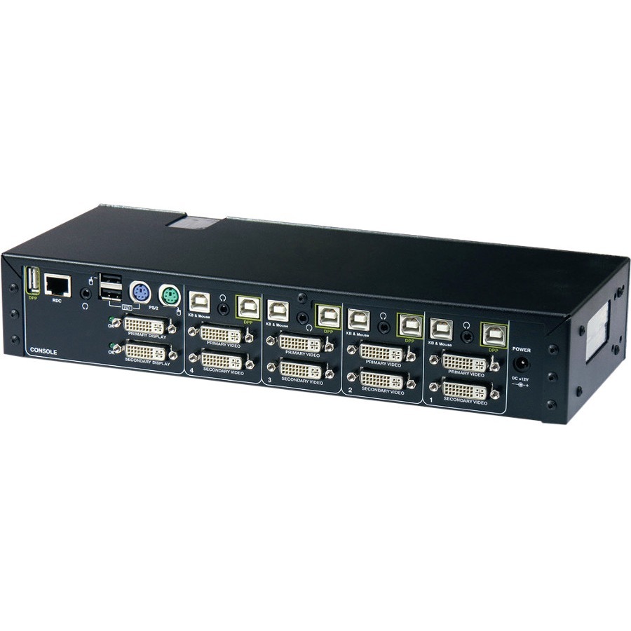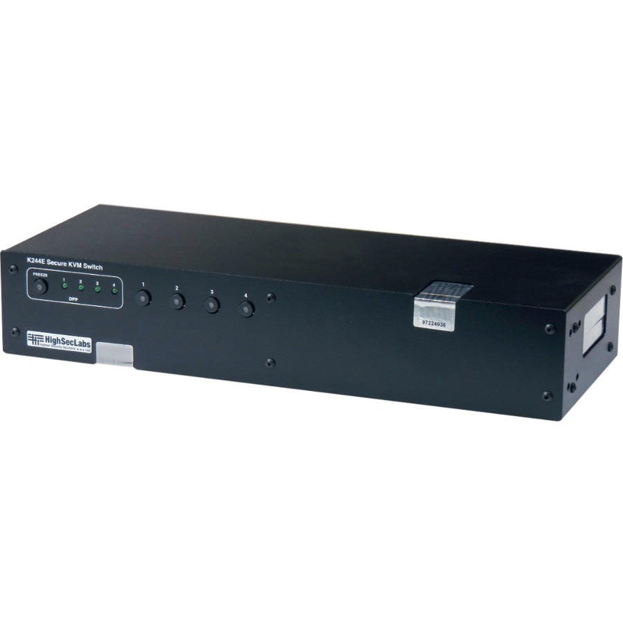 The K244E is a secure 4-port, DVI-I dual-display KVM switch. It provides the highest possible isolation between four connected computers each having two video output ports. The video ports support various video interfaces, from VGA to dual-link DVI and HDMI. Each computer may connect to up to two independent displays and operate in dual-display mode. An RDC port enables user-friendly, comfortable remote control of the KVM switch. For enhanced security, a USB user authentication port (DPP) connects to a smart card or biometric reader. This requires the insertion of a physical authentication card or identification of a fingerprint to access the various computers/networks.