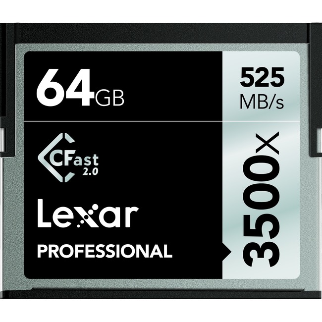 Designed to address the exacting demands of today's top content innovators, the Lexar Professional 3500x CFast 2.0 card provides new thresholds of high-speed performance and large capacity options to easily capture the highest-quality 4K video and beyond. And with a read transfer speed up to 525MB/s, the card dramatically accelerates post-production workflow.