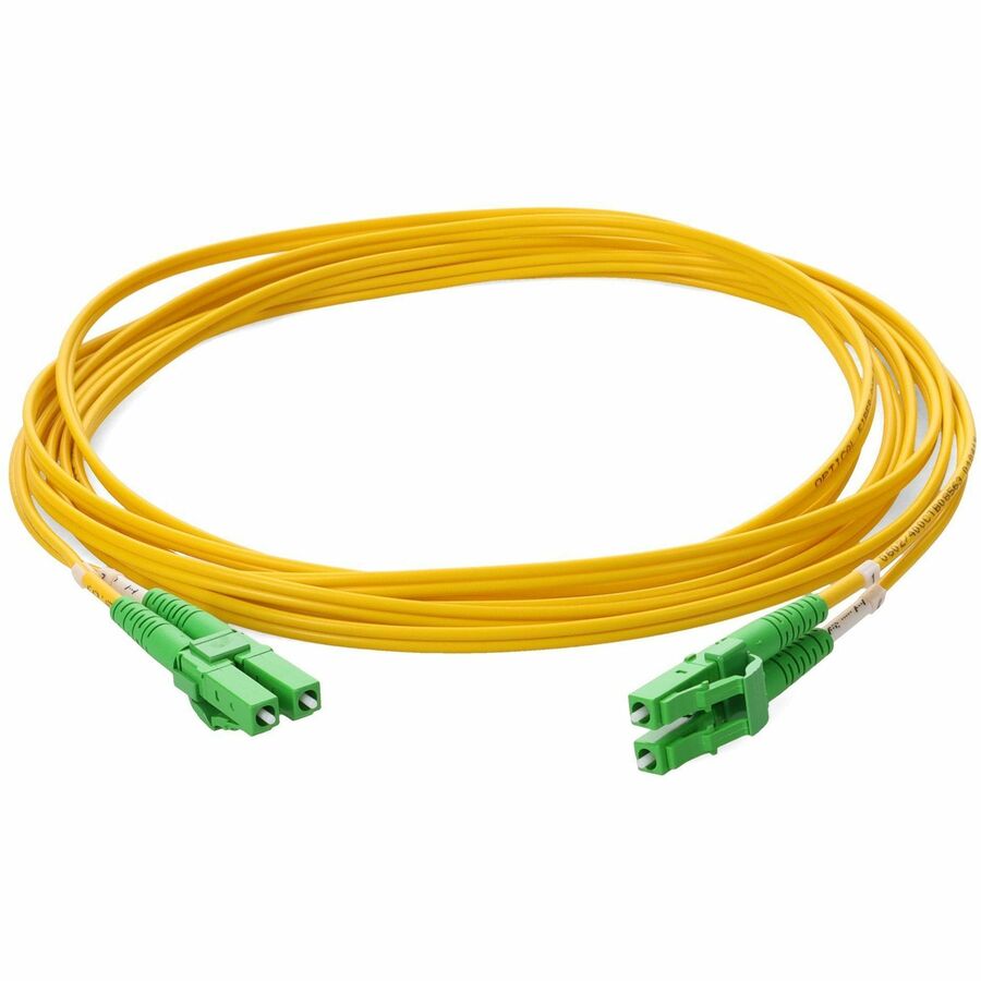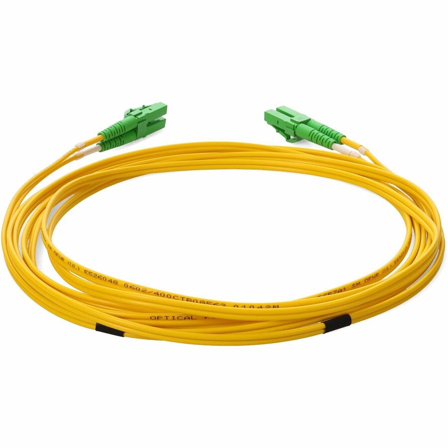 This is a 10m angled LC (male) to angled LC (male) yellow duplex riser-rated fiber patch cable. OS2 is a standard single-mode optical fiber commonly used with wavelengths of 1310nm and 1550nm (9/125 microns), and has a maximum attenuation of 1dB/km. The OS2 standard is defined in ISO/IEC 11801. This optical fiber, nonconductive, riser (OFNR) cable is best suited for use in interior fiber-optic applications. A duplex cable is a two-strand fiber optic patch cable that works best with transceivers that both transmit and receive. Our patch cables are 100% compliant for all of your networking needs. Our products are guaranteed by federal law to not affect or void OEM warranties.