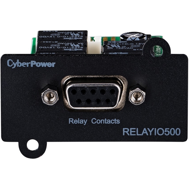 The CyberPower RELAYIO500 is a local management solution that provides users the ability to monitor UPS status and events via 5 contact closure outputs. Easy to install in any compatible CyberPower Smart App UPS with expansion slot. Input contact closure allows the UPS to be shutdown remotely while on Battery Mode to preserver battery power in the event of a prolonged power outage.