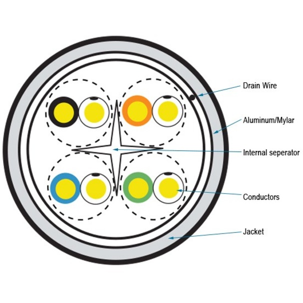 Black Box CAT6A 650-MHz Solid Ethernet Bulk Shielded Cable provides transmission performance beyond 650MHz exceeding the industry standards and ETL Verified for supporting the operation of 10Gig Ethernet applications (10GBASE-T). This cabling provides support for high bandwidth applications such as data centers and other data-intensive or backbone requirements.
