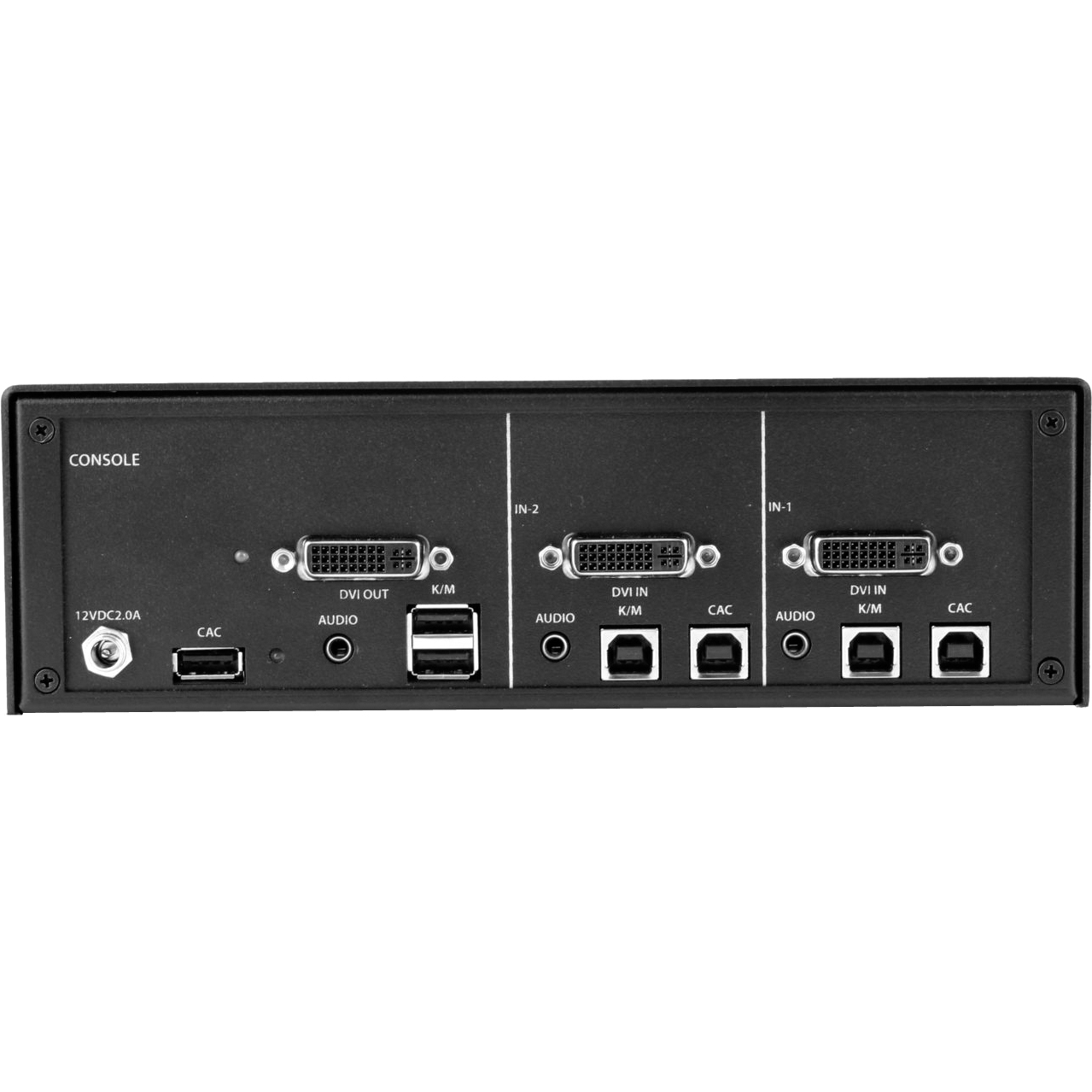 The SDVN-2S-P is a 2-port, single-head dual-link DVI-I KVM switch with a dedicated CAC port and support for 4K (3840×2160 @ 30Hz) resolution video via an adaptor.