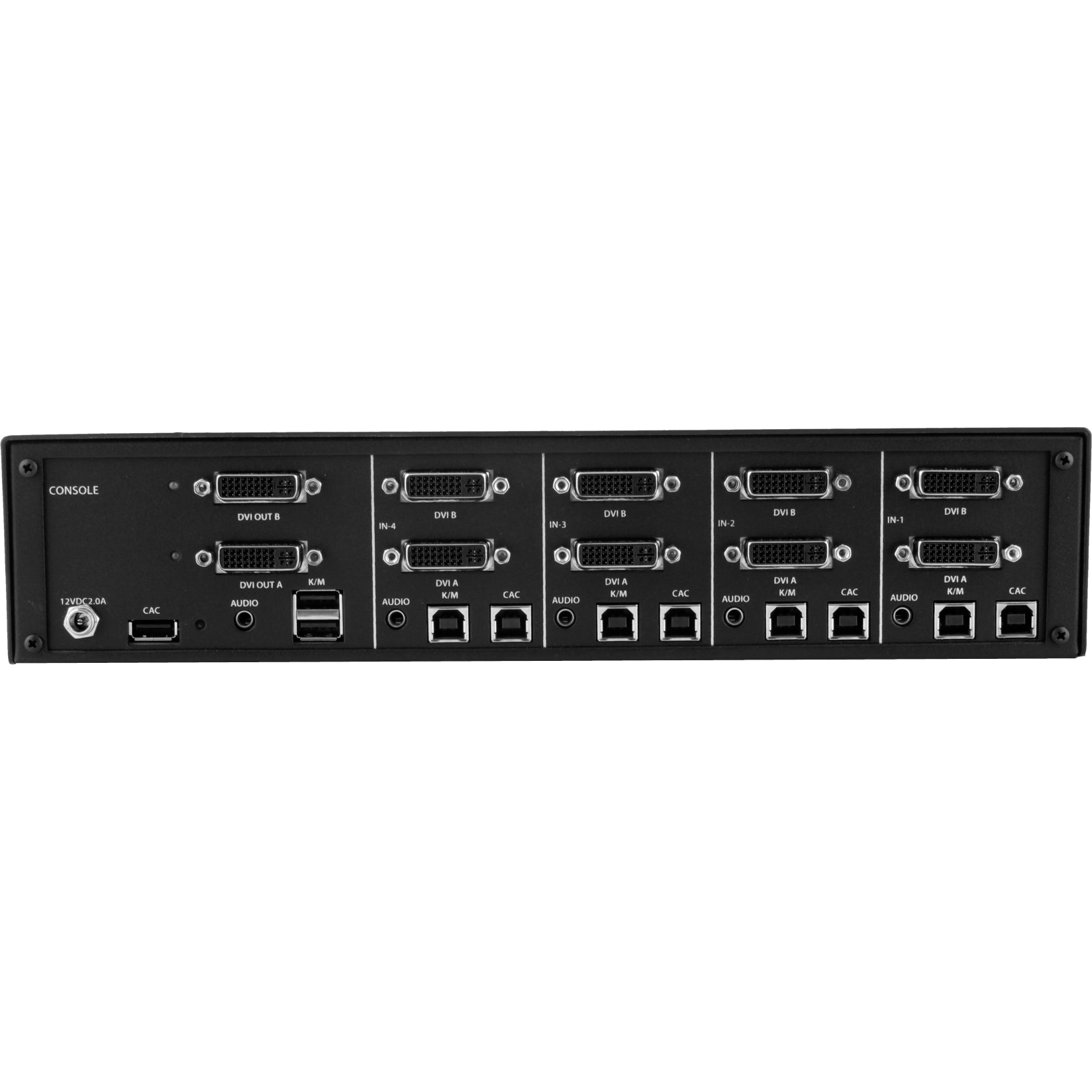 The SDVN-4D-P is a 4-port, dual-head dual-link DVI-I KVM switch with a dedicated CAC port and support for 4K (3840×2160 @ 30Hz) resolution video via an adaptor.