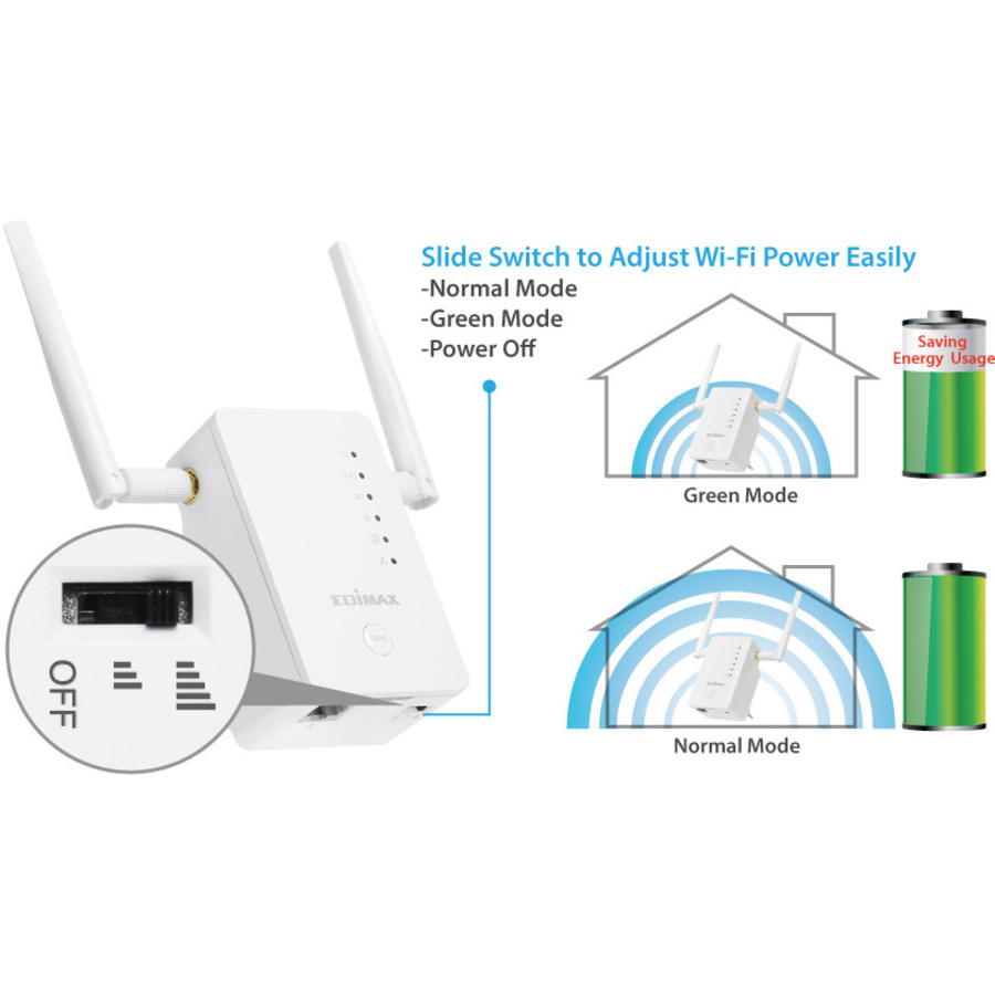 Featuring a new hardware switch to adjust between normal and green Wi-Fi transmit power (the strength of the Wi-Fi signal), or switch off the power with one click. If you only need Wi-Fi in a smaller house, just switch to green mode to reduce power by 75% and conserve energy.