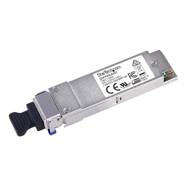 The QSFP40LR4ST is an MSA compliant fiber QSFP+ transceiver that's designed, programmed and tested to work with 40GBASE-LR4 compatible MSA switches and routers. The QSFP+ transceiver module supports a maximum distance of up to 10 km (6.2 mi) and delivers dependable 40 GbE connectivity over fiber cabling.