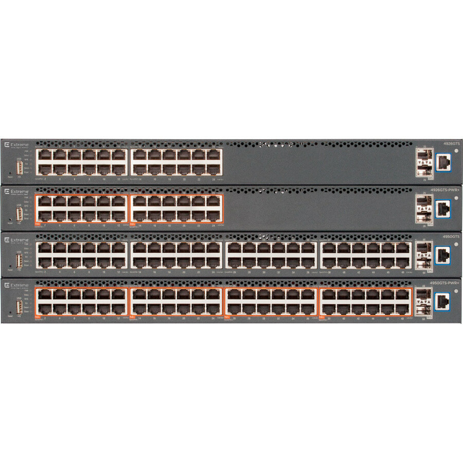 Next-generation, high-performance, feature-rich Ethernet Switch platforms specifically optimized for the Wiring Closet demands of the mainstream Enterprise. Extreme Ethernet Routing Switch 4900 products deliver the agility to perform equally in conventional IP and Ethernet Fabric-based networking solutions. The Ethernet Routing Switch 4900 products leverage the latest advances in network switching architecture design to maximize hardware performance and software capability. These products represent a clear evolutionary step for the Ethernet Routing Switch 4000 Series, particularly in terms of value and future-ready flexibility, and have been optimized for the Enabled Edge role.