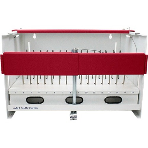 Maximize space with a compact, lightweight modular charging station that conveniently mounts to walls or desktops, and can even be stacked. The Essential 16 efficiently charges up to 16 devices of any type, all without breaking the bank. Don't forget to spread team spirit! These solutions are also available in other School Pride colors and the standard blue. Visit http://www.JAR-Systems.com/essential-16-charging-station for more information.