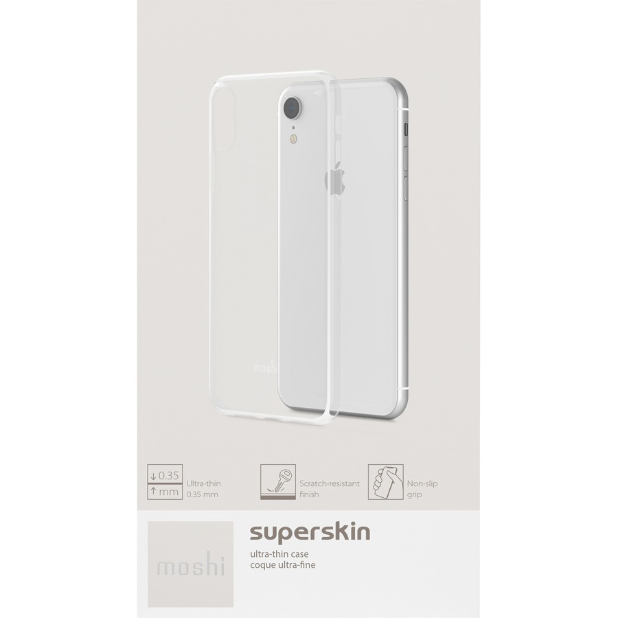 Moshi's SuperSkin for iPhone is an ultra-thin, protective cloak for people who adore the naked look and feel of their iPhone. At just 0.35 mm thin, it is one of the slimmest cases in the world, offering superior scratch resistance from keys and other everyday items. SuperSkin's extreme clarity allows the design of your phone to shine through, and a non-slip finish provides improved grip for added peace of mind. The case is easy to install, and features a raised camera cut out to protect your lens when laid flat.