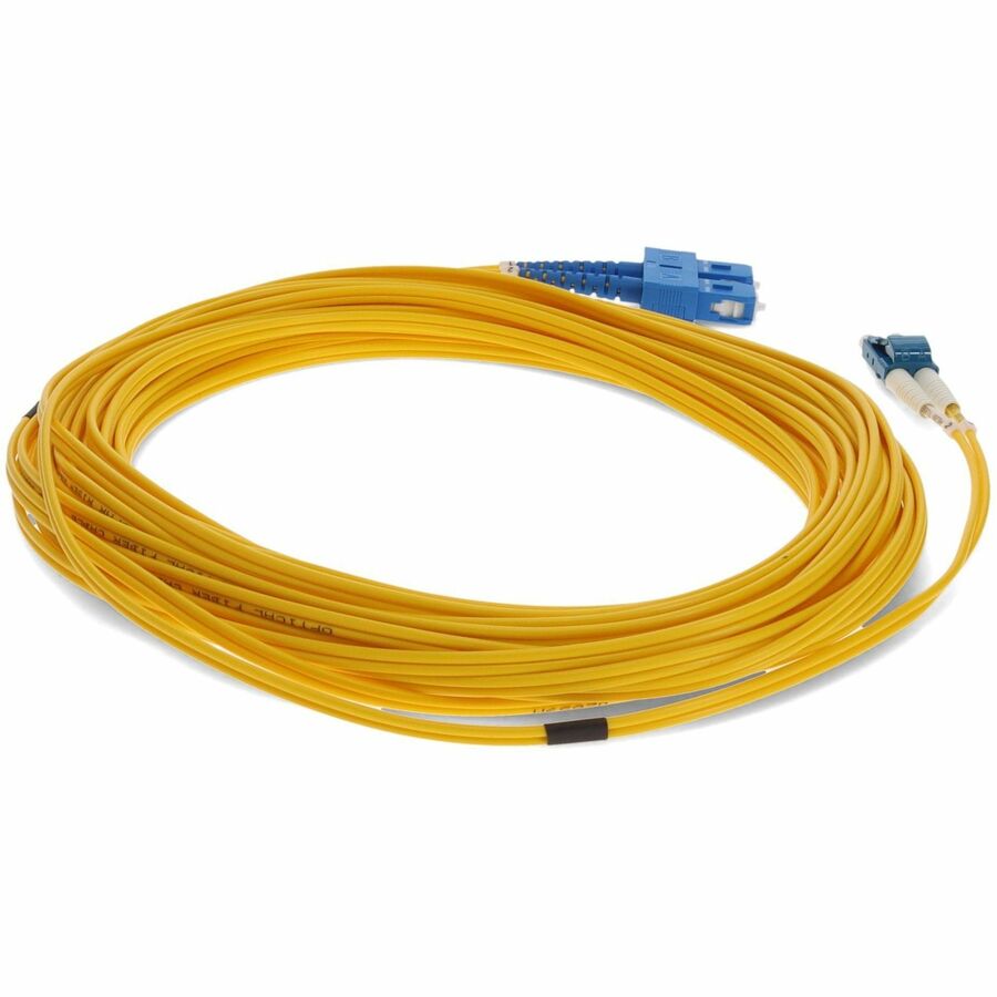 This is a 16.0m (52.5ft) LC (male) to SC (male) yellow OS2 duplex riser-rated patch straight cable that is used for high speed data transfer. OS2 is a standard single-mode optical fiber commonly used with wavelengths of 1310nm and 1550nm (9/125 microns), and has a maximum attenuation of 1dB/km. The OS2 standard is defined in ISO/IEC 11801. This riser (OFNR) cable is best suited for use in interior fiber-optic applications. Duplex cabling provides two-strands of fiber and is most commonly used in applications that utilize one lane to transmit and one lane to receive. Our patch cables are 100% compliant for all of your networking needs and are guaranteed by federal law to not affect or void OEM warranties.