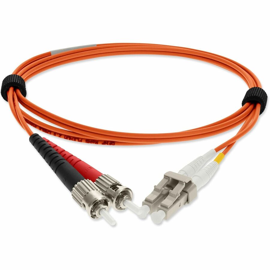 This is a 3m LC (male) to ST (male) orange duplex plenum-rated fiber patch cable. An OM1 cable has a core size of 62.5 microns that can support 10 Gigabit Ethernet at lengths measuring up to 33 meters. It is most commonly used for 100 Megabit Ethernet applications. This plenum-rated cable is the only cable allowed in spaces defined as air plenum-rateds, such as raised flooring systems and air handling ducts. Plenum-rated cables must self-extinguish and prevent re-ignition. A duplex cable is a two-strand fiber optic patch cable that works best with transceivers that both transmit and receive. Our patch cables are 100% compliant for all of your networking needs. Our products are guaranteed by federal law to not affect or void OEM warranties.