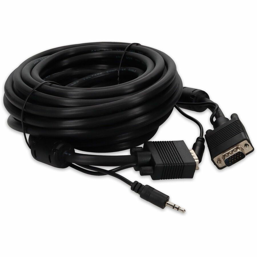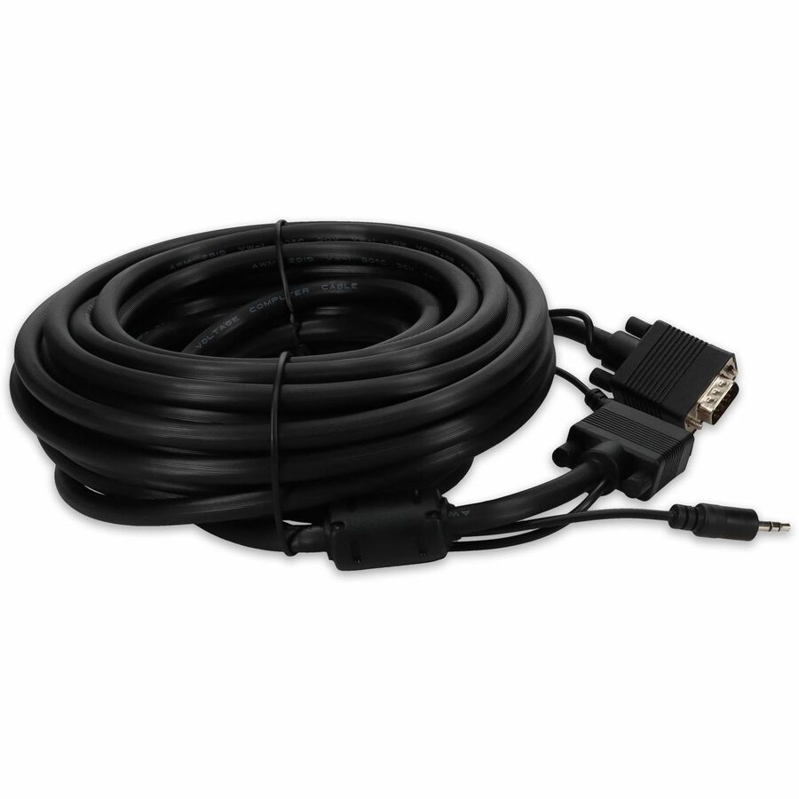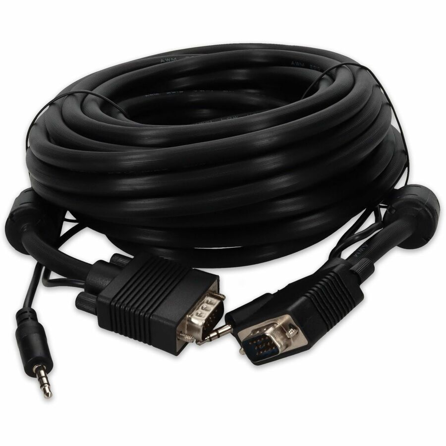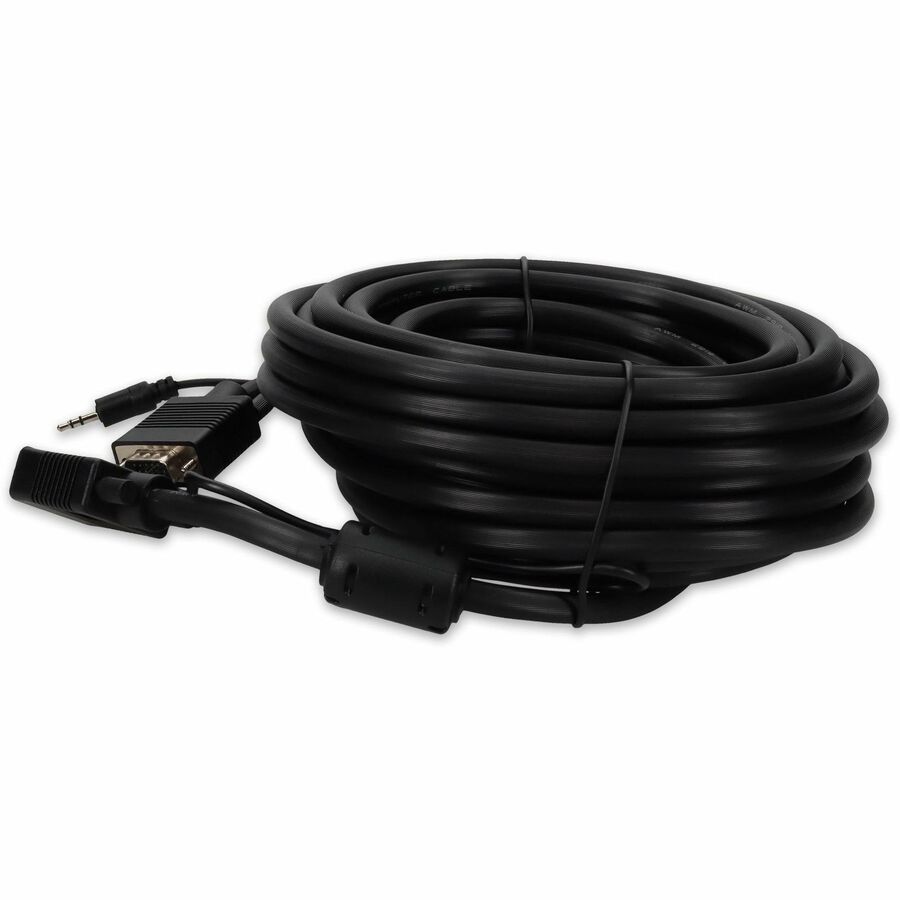 This is a 35ft VGA male to male black cable for connectivity between display devices. This device offers a maximum resolution of 1920x1200 (WUXGA) with 3.5mm audio input. This part is designed to fit your application needs by providing VGA to VGA connectivity. Our 100% tested cables are backed by a 3 year warranty and are guaranteed to work the first time.