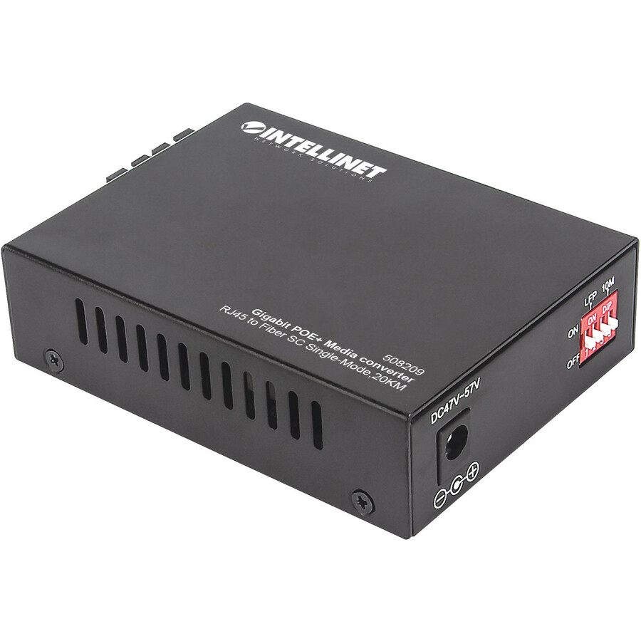 The Intellinet Network Solutions Gigabit PoE+ Media Converter offers simplified migration from copper-based Ethernet to Fiber Ethernet while providing power to a compatible device at up to 30 watts. The device creates the easy expansion of existing networks with minimum cost and complexity. The converter is completely transparent to the network so the network performs exactly the way it did before – only now it can support both copper and fiber mediums.