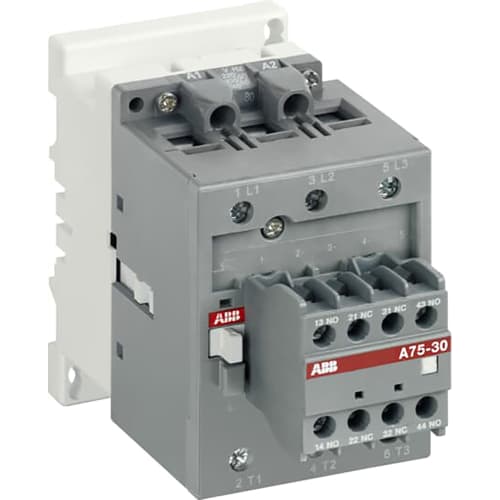 ABB A75-30-22-84 Contactor; NEMA; 3 Pole; 80A; 110-120VAC@60Hz; 110VAC@50Hz Coil; DIN Rail/Panel Mount