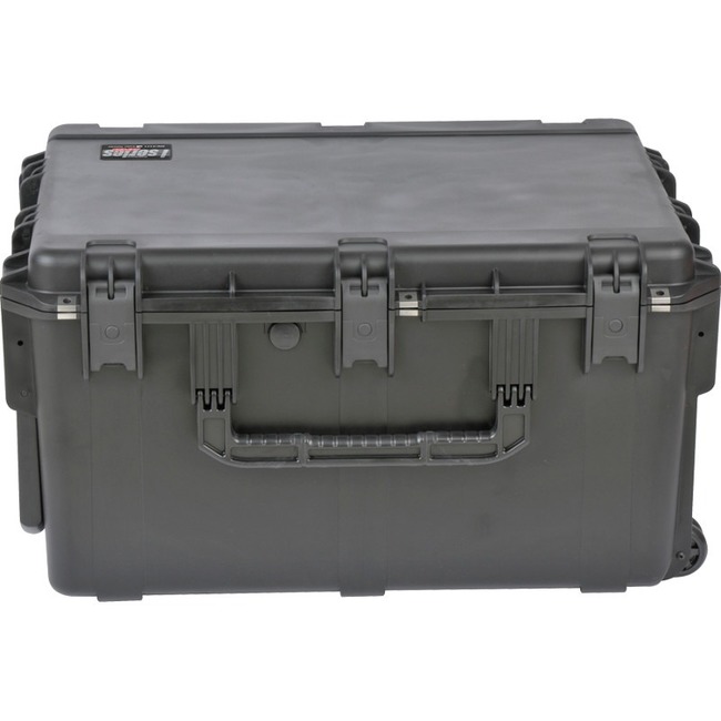 SKB iSeries Injection Molded Mil-Standard Waterproof Cases are molded of ultra high-strength polypropylene copolymer resin, featuring a gasketed, water and dust tight, submersible design (MIL-C-4150J / IP67) that is resistant to corrosion and impact damage. Features a molded-in hinge, patented trigger release latch system, comfortable, snap-down rubber over-molded cushion grip handle, automatic ambient pressure equalization valve (MIL-STD-648C), resistance to UV, solvents, corrosion, fungus and impact damage (MIL-STD-810F' and four in-line wheels for easy transport. The interior features cubed foam for customization and protection in transit.