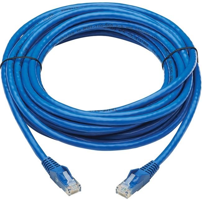 The RJ45 connectors' snagless design protects the locking tabs from being damaged or broken off during installation. Integral strain relief gives the N201P-020-BL extra flexibility, reduces stress, and helps the cable move freely without cracking or breaking loose from the connector.