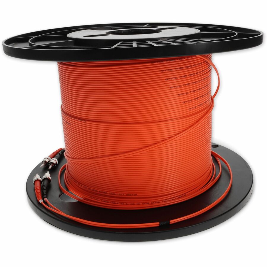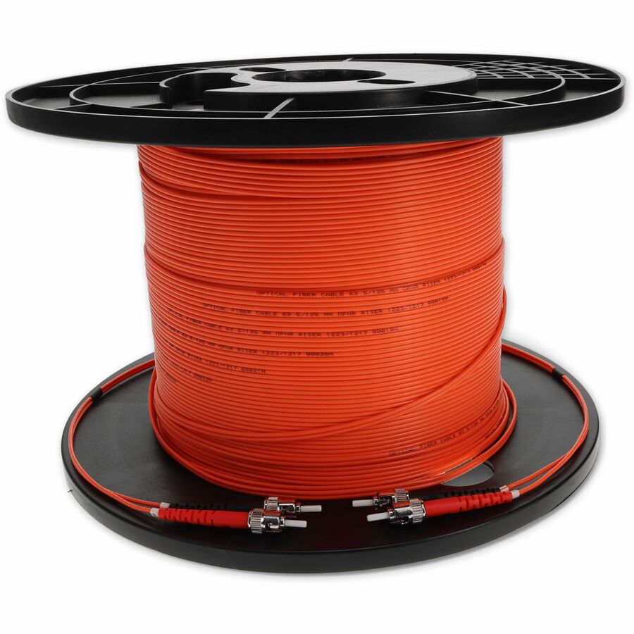 This is a 100m ST (male) to ST (male) orange duplex riser-rated fiber patch cable. An OM1 cable has a core size of 62.5 microns that can support 10 Gigabit Ethernet at lengths measuring up to 33 meters. It is most commonly used for 100 Megabit Ethernet applications. This optical fiber, nonconductive, riser (OFNR) cable is best suited for use in interior fiber-optic applications. A duplex cable is a two-strand fiber optic patch cable that works best with transceivers that both transmit and receive. Our patch cables are 100% compliant for all of your networking needs. Our products are guaranteed by federal law to not affect or void OEM warranties.